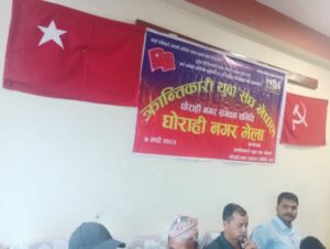 दाङ : क्रान्तिकारी युवा संघ नेपालले घोराही नगर संगठन समितिको भेला घोराही बजारमा सम्पन्न गरेको छ। भेलामा रमेश महरको अध्यक्षतामा सुरु भएको कार्यक्रममा प्रमुख अतिथि क्रान्तिकारी कम्युनिस्ट पार्टी नेपालका पोलिट्ब्युरो सदस्य तथा ४ न. ब्यूरो (राप्ती ब्यूरो) इन्चार्ज श्याम बहादुर बोहरा अटलले गर्नु भएको थियो। प्रमुख अतिथि अटलले शुभकामना मन्तव्य राख्दै देशमा भष्ट्रचारले जरो गाडेको भन्दै त्यसको अन्त्यको लागि युवाहरु एक भएर संर्घष गर्नु पर्ने बताउनु भएको छ। साथै युवाहरूको सहभागीता बिना मुलुकको परिबर्तन सम्भव नभएको भन्दै प्रमुख अतिथि अटलले नयाँ जनबादी क्रान्तिको खुडकिलो पार गर्दै बैज्ञानिक समाजवाद स्थापना गर्ने युवाहरु नयाँ तरिकाले जुरमुराउनु पर्ने बताउनु भयो। त्यस्तै अर्को अतिथि पार्टी केन्द्रीय सदस्य तथा अखिल क्रान्तिकारी केन्द्रीय कार्यालय सदस्य दिपक बिष्टले युवाहरु निराश हुने हैन र कसैको लैलैमा लाग्ने हैन सत्यको पक्षमा लागेर यो व्यवस्थाका विरुद्ध संर्घष गर्नु पर्ने बताउनु भयो। अतिथि पार्टीका केन्द्रीय सदस्य तथा अखिल क्रान्तिकारी केन्द्रीय कार्यालय सदस्य नवीन खड्का बारुदले युवाहरु हरेक बेथितिका विरुद्ध संर्घष गर्नु पर्ने र सडक राजावादी र संसदवादीहरुले कब्जा गरेको भन्दै क्रान्तिकारी पार्टी र युवाहरुले कब्जा गर्नु पर्ने बताउनु भयो। साथै मिटर ब्याजी, लुघुबित , बैंक , शिक्षा र स्वास्थ्य माफिया र भु माफियाहरु लाई घिसारे सडकमा ल्याएर कालोमोसो र जुताको माला लाएर बजार घुमाउने युवाहरुलाइ निर्देशन दिनु भयो। कार्यक्रममा जिल्ला इन्चार्ज हुकुम खड्का , केन्द्रीय सदस्य नारायण भण्डारी , जिल्ला सचिव इशोरी गैरे लगाइत केन्द्रीय र जिल्ला तहका नेताहरुको सहभागीता रहेको थियो। भेलाले अध्यक्ष रमेश महर ,सचिब गोबिन्द र कोषाध्यक्ष पुरण सहित ११ सदस्य समिती निर्बाचित गरेको छ।कार्यक्रमको सहजीकरण बिरेन्द्र खड्का ले गर्नु भएको थियो । भने स्वागत मन्तव्य शिशिरले गर्नु भएको थियो भने कार्यक्रममा युवाहरुको उल्लेखनीय सहभागीता रहेको थियो।