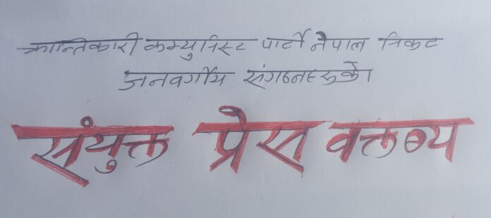 काठमाडौं : क्रान्तिकारी कम्युनिस्ट पार्टी नेपाल निकट जनवर्गीय संगठनहरुले भाद्र २३ र २४ को जेन्जी आन्दोलन , ओली नेतृत्वमा रहेको काँग्रस – एमाले गठबन्धन सरकारको विघटन र त्यस पछि सेनाको नियन्त्रणमा सत्ता पुगेको वर्तमान राजनीतिक अवस्था बारे धारणा स्पष्ट गर्न संयुक्त प्रेस वक्तव्य जारी गरेका छन् । संयुक्त प्रेस वक्तव्यमा सीताराम तामाङ, (अध्यक्ष, क्रान्तिकारी किसान महासङ्घ, नेपाल, केन्द्रीय समिति),पवनमान श्रेष्ठ, (अध्यक्ष, नेपाल आदिवासी जनजाति महासंघ),ईश्वर तिमिल्सिना (संयोजक, क्रान्तिकारी ट्रेड युनियन महासङ्घ, नेपाल, रा.स.आयोजक समिति),भीम चापागाईं, (संयोजक, क्रान्तिकारी सुकुम्वासी सङ्घ, नेपाल, रा.स.आयोजक समिति),टेकबहादुर विक, (संयोजक, क्रान्तिकारी दलित मुक्ति मोर्चा, नेपाल, रा.स.आयोजक समिति) र महेश श्रेष्ठ(संयोजक, अखिल(क्रान्तिकारी), रा.स.आयोजक समिति) ले हस्ताक्षर गर्नु भएको छ । २०८२ भदौ २७ गते जारी प्रेस वक्तव्यको पूर्ण पाठ यस प्रपार छ –