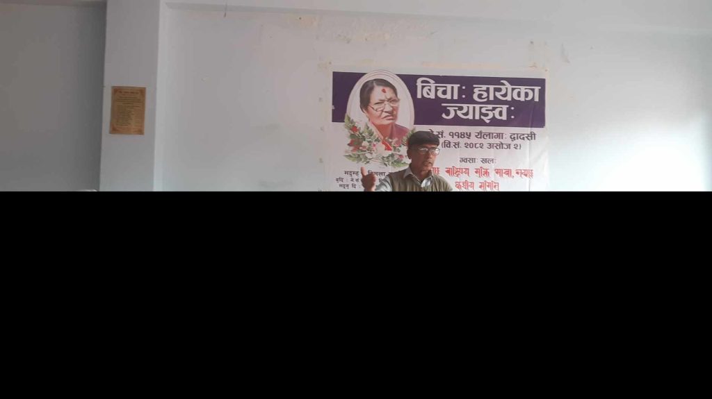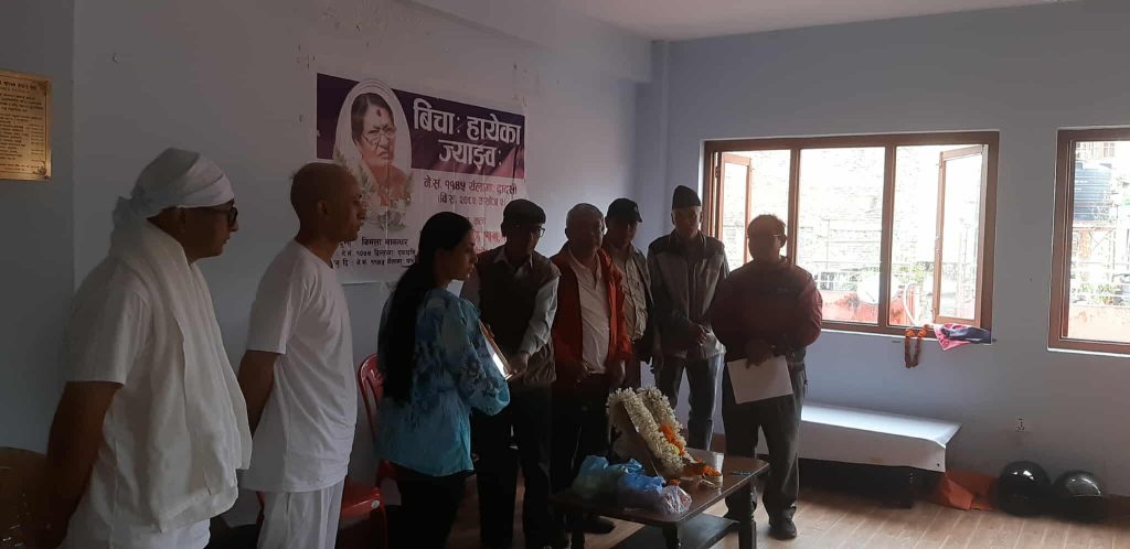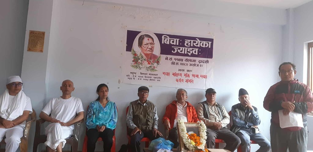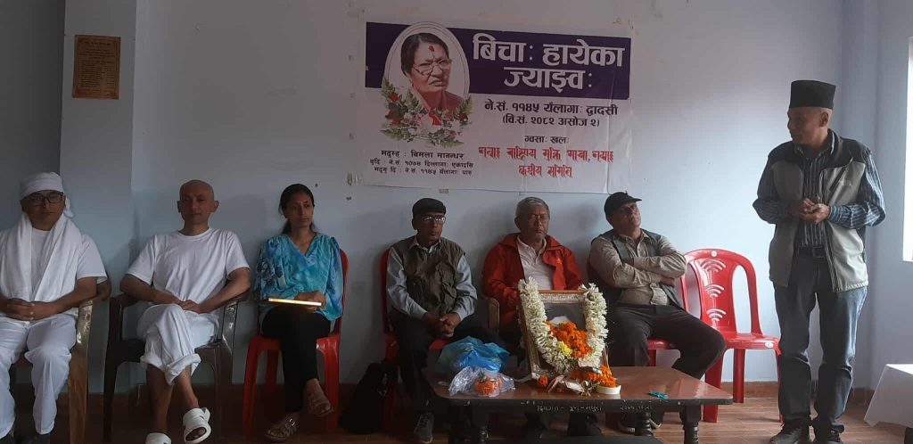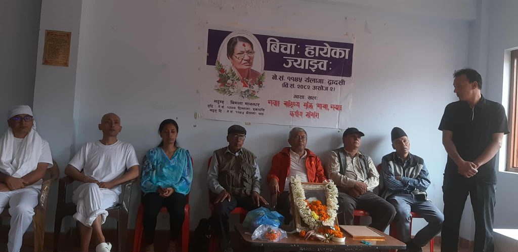 काठमाडौँ : मोेहन वैद्य किरण नेतृत्वको क्रान्तिकारी कम्युनिस्ट पार्टी नेपाल निकट नेवाः राष्ट्रिय मुक्ति मोर्चा नेपालका केन्द्रीय सदस्य नमस्ते सायमीकी ममतामयी आमा विमला मानन्धरको श्रद्धाञ्जली कार्यक्रम सम्पन्न भएको छ ।