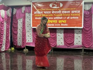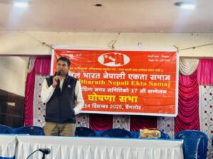 बेंगलोर : अखिल भारत नेपाली एकता समाज वेंगलोर दक्षिण नगरसमितिको १७ औ नगर सम्मेलन १४ दिसम्बर २०२५ का दिन वेंगलोरमा अवस्थित रेणुखम्बा थकाइ मंदिर हलमा सम्पन्न भएको छ। कार्यक्रमको संचालन नगर सचिव हरिष वि.कले र अध्यक्षता नगर उपाध्यक्ष उदय सिंह बिष्टले गर्नु भएको थियो। अतिथिको आशन ग्रहण पछि सहिदहरूको सम्जनामा १ मिनेट मौनधारण गरिएको थियो। उपस्थित जनमानसलाइ शब्दबाट अर्जुन सिह भाट र गीत–संगीत बाट रक्तिमका कलाकारहरूले स्वागत गर्नु भएको थियो। प्रमुख अतिथि अखिल भारत नेपाली एकता समाजका केंद्रीय सल्लाहकार सदस्य कृष्ण केसीले दीप प्रज्वलन गरेर १७ औं नगर सम्मेलनको उद्घाटन गर्नु भएको थियो। उद्घाटन पछि सम्मेलन सफलताको शुभकामना दिनेहरूमा अखिल भारत नेपाली एकता समाजका केन्द्रीय सचिव राम सिंह विक, केन्द्रीय सदस्य करन दयाल, नेपाली समाज भारतका केरला कर्नाटका राज्य समितिका सचिव दिपक चन्द, प्रवासी नेपाली संघ भारत कर्नाटका राज्य समितिका ईन्चार्ज मदन भन्डारी, केएस थलो फ़ाउन्डेशनका अध्यक्ष रजनी कोहेली, अखिल भारत नेपाली एकता समाजकी केंद्रीय सदस्य ज्ञानमति विक, राजेन्द्र विक, सिवराम विक, विरेंद्र विक, द्रौपति विक, हिरा ओड, सुन्दरी कोली, वसन्ति वि.क, पार्वती वयानी, अरूणा वि. क, जनक विक, लक्ष्मी भट्ट, विद्यार्थी क्षेत्रीय समिति बाट सरिता वि क र विन्दु विक रहनु भएको थियो। शुभकामना पछि केन्द्रीय सदस्य तथा क्षेत्रीय अध्यक्ष हेमराज रिजालले १७औं नगर सम्मेलनको प्यानल प्रस्तुत गर्नु भएको थियो। नव निर्वाचित समितिलाइ बधाई दिनेहरूमा प्रमुख अतिथि अखिल भारत नेपाली एकता समाजका केन्द्रीय सलाहकार सदस्य कृष्ण के सीले अखिल भारत नेपाली एकता समाज भारतमा रहेका आम नेपालीहरूको हक हित र सुरक्षाको प्रत्याभूत गर्न हमेसा अग्रपंतिमा रहेर अभिभावकिय भूमिका निभाउने संगठन हो भन्नु भयो। त्यस्तै वधाई दिनेहरूमा केन्द्रीय उपाध्यक्ष कृष्ण बिक, महासचिव महेन्द्र वस्याल, केंद्रीय सदस्य धर्मराम विक, गनेश बि क, शेर बहादुर दयाल, शेर सिंह वि. क, मिना वि क, कलावती दयाल, विद्यार्थी संघका केन्द्रीय उपाध्यक्ष प्रकाश दयाल र सदस्य प्रतिभा विक रहनु भएको थियो। १७औं नगर सम्मेलनले रामदत्त पाण्डेको अध्यक्षतामा २१ पूर्ण ७ वैकल्पिक र सलाहकार गरी ५३ सदस्यीय वेंगलोर दक्षिण नगर समितिको चयन गरेको छ। अध्यक्ष राम दत्त पाण्डेय ,उपाध्यक्ष बिरेन्द्र विक, सचिव हरिश विक, सहसचिव राजेन्द्र विक ,कोषाध्यक्ष शिब राम विक, सदस्यहरूमा अर्जुन टमटा, मिना बिक, कलावती दयाल, द्रोपती विक, वसन्ती विक, अरूणा विक, हिरा ओड, जनक बयानी, अर्जुन सिंह भाट, बोम बहादुर परियार, स्याम बहादुर परियार, १मोहन लाल परियार, लवदेव विक, गणेश विक, उत्तम बयानी, पार्वती बय