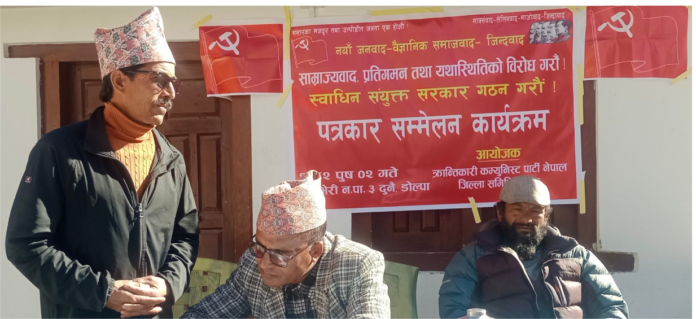 डोल्पा : क्रान्तिकारी कम्युनिस्ट पार्टी नेपालका पोलिटब्युरो सदस्य तथा ३ नं. व्यूरो ईन्चार्ज शेरबहादुर देउवाले अव जेन जी विद्रोह भन्दा उच्चस्तरको विद्रोह हुने बताउनु भएको छ । क्रान्तिकारी कम्युनिस्ट पार्टी नेपाल डोल्पा जिल्ला समितिले २०८२ पौष २ गते डोल्पा जिल्लाको सदरमुकाम दूनै बजारमा आयोजना गरेको पत्रकार सम्मेलनमा बोल्दै देउवाले सो कुरा बताउनुभएको हो । देउवाले अगाडि भन्नुभयो ,“ जेन्जी विद्रोह सेटमा थिएन । हाम्रो विद्रोह सेटमा हुने छ । हाम्रो आफ्नै सेना हुने छ । हाम्रो न्यायालय हुने छ । हाम्रो आफ्नै सरकार हुने छ । जेन्जीहरु अलमलिएकाछन । किनभने उनीहरुको आन्दोलन सेटमा छैन । हामीले जनयुद्धका बेला जसरी सोच्दथ्यौं ,त्यो सोचाई अहिले पनि जीवित छ । ”