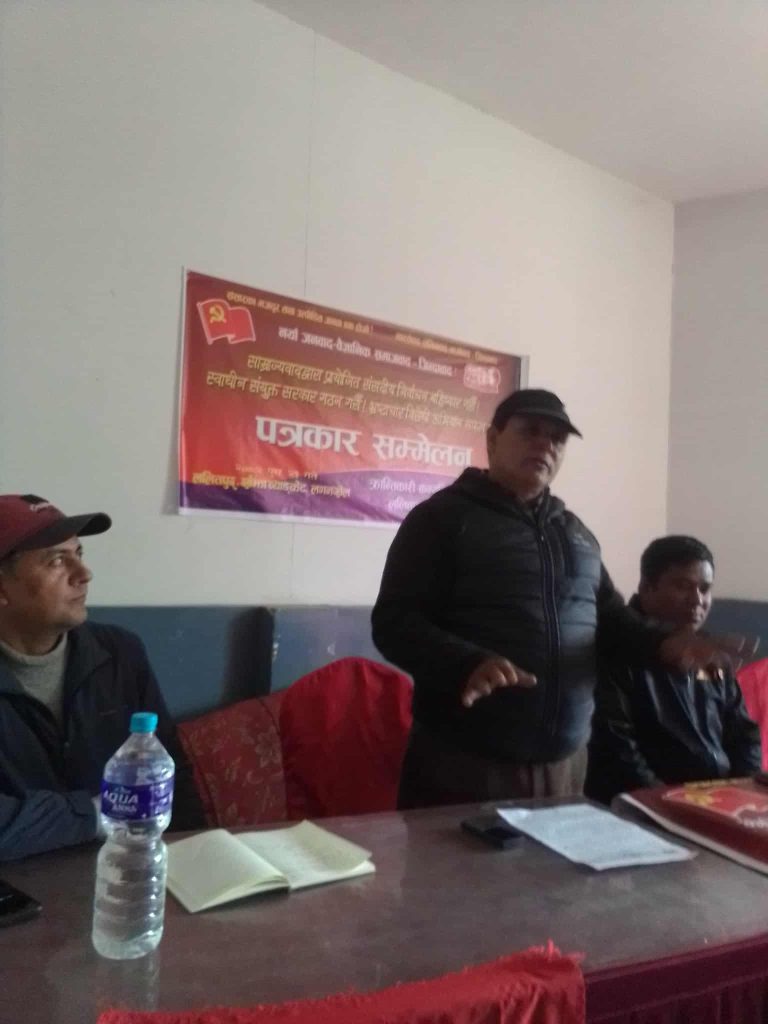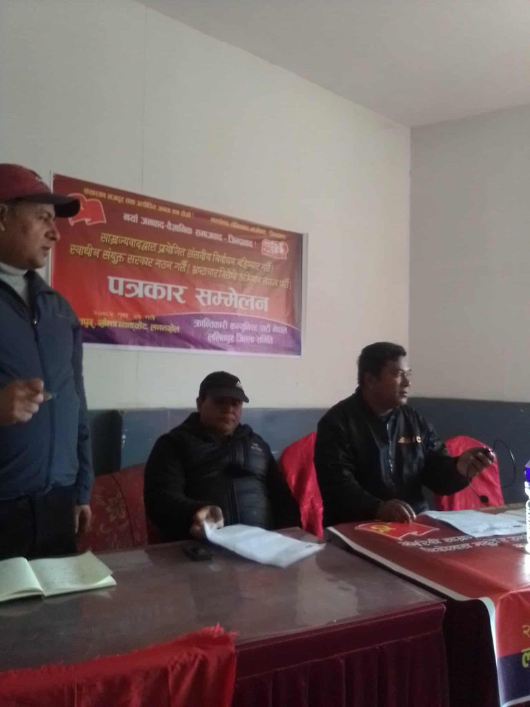 उहाँले ललितपुर जिल्लाका सम्पूर्ण न्यायप्रेमी, देशभक्त, श्रमिक, किसान, युवा, विद्यार्थी, राष्ट्रिय पुँजीपति, बुद्धिजिवी, पत्रकार तथा आम जनसमुदायको ध्यानाकर्षण गराउन पत्रकार सम्मेलन गरिएको पनि स्पष्ट पार्नुभयो । पत्रकार सम्मेलनमा पार्टीको तर्फबाट एक प्रेस वक्तव्य समेत जारी गरिएको छ । प्रेस वक्तव्य ललितपुरका जिल्ला सेक्रेटरी जगदिश्वर महर्जनले वाचन गरेर सुनाउनु भएको थियो ।