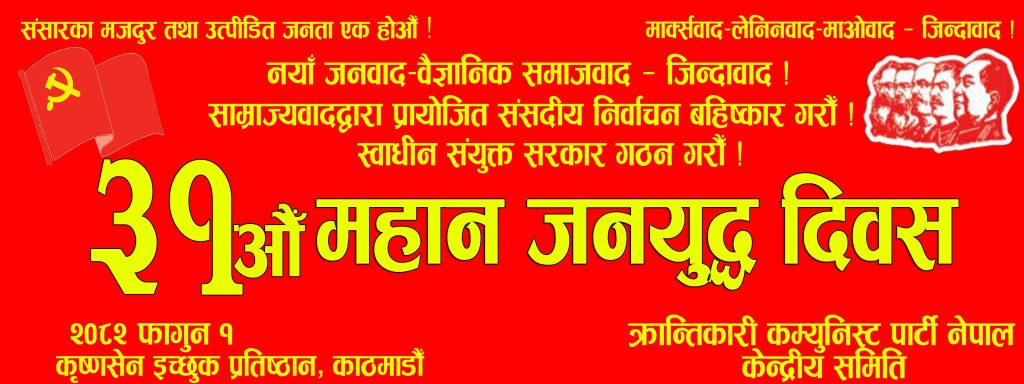 माओले भनेझै विचार र राजनीतिक लाइन सही वा गलत हुनुले सबै कुराको निर्धारण गर्ने कुरा नेपालमा सञ्चालित जनयुद्धले राम्रोसँग चरितार्थ गरेको बताउनु हुँदै भन्नुभयो, “जनयुद्ध सुरु गर्दा पार्टी पनि सानै थियो । दुईवटा थोत्रा भरुवा बन्दुक मात्रै थिए । त्यही हतियारको बलमा जनयुद्ध सुरु गरिएको हो । कतिपयले भारतले हतियार र तालिम दिएर नेपालमा जनयुद्ध गरेको भनेर दुष्प्रचार पनि गर्ने गरेका छन् । त्यो सरासर झुठ हो । वास्तवमा जनयुद्ध नेपाली जनताले न्याय, मुक्ति र समानताका लागि गरेको जनयुद्ध हो । जनयुद्धले छोटै समयमा राष्ट्रिय अन्तराष्ट्रिय चर्चा र समर्थन प्राप्त पायो । माओवादीहरुको अन्तर्राष्ट्रिय संगठन रिमले समर्थन ग¥यो । उसले सगरमाथाको देश नेपालबाट क्रान्तिको झण्डा फहराइरहेको छ भनेर आफ्नो म्याग्जिनमा समाचार नै छाप्यो । छाटो समयमा नेपाली जनयुद्धले विश्वनै प्रभावित र चकित तुल्यायो । तर आफ्नो शक्ति र जनतामाथिको विश्वासलाई कम आँक्दै प्रचण्ड बाबुरामले सम्झौता गरेपछि जनयुद्धमाथि ठूलो धोका हुन पुग्यो । आज हामी जयुद्धबाट शिक्षा लिँदै फेरि जनयुद्धलाई नयाँ ढंगले अगाडि बढाउन खोजिरहेका छौं । प्रचण्डहरु भने रुकमतिर चुनाव जित्नलाई अनेक तमसा देखाइरहेका छन् ।”