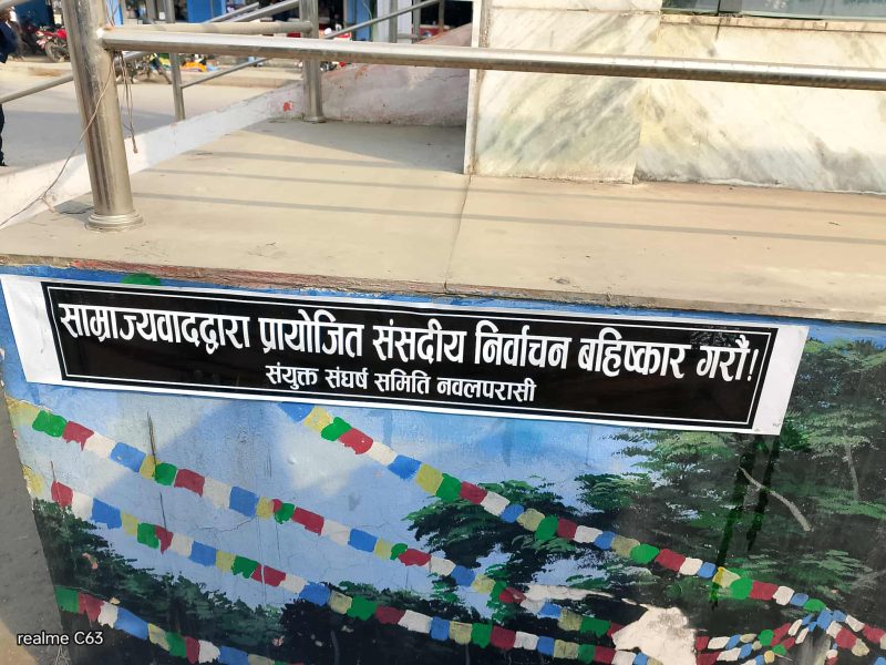 कार्यक्रम सकेर होटलमा बसेको बेला संयुक्त संघर्ष समिति नवलपरासी संयोजक समेत रहेका क्रान्तिकारी कम्युनिस्ट पार्टी नेपालका बैकल्पिक केन्द्रीय सदस्य पाण्डेयलाई प्रहरीले नियन्त्रणमा लिएको प्रत्यक्षदर्शीले जानकारी दिएका छन। क्रान्तिकारी कम्युनिस्ट पार्टी नेपाल ,नेकपा( बहुमत), नेकपा र बैज्ञानिक समाजवादी कम्युनिस्ट पार्टी निर्वाचन बहिष्कारको पक्षमा छ्न । गिरफ्तारको बाबजुद पनि सदरमुकाम परासीमा बहिष्कार को ब्यानर र पर्चा छ्यापछयाप्ती भेटिएका छ्न ।