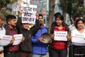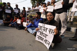 काठमाडाैँ : संयुक्त विद्यार्थी संगठनको आयोजनामा काठमाडाैँको माइतीघरमा विद्यार्थीहरुले प्रदर्शन गरेका छन् । पछिल्लो समय सरकारले पेट्रोलियम पदार्थमा अस्वाभाविक तवरले मूल्य वृद्धि गरेको विरोधमा विद्यार्थीहरु आन्दोलित भएका हुन् । पेट्रोलियम पदार्थमा मूल्यवृद्धि सँगसँगै सबै कुरामा चर्को मूल्य वृद्धि भएको छ । रास्वपाको बहुमत प्राप्त सरकार गठन भएको केही दिनमा नै मूल्यवृद्धि भएको छ ।